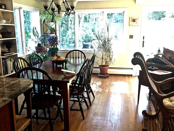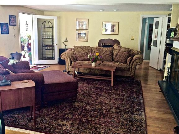 Winter Rental-short term Private and spacious cottage-style home for rent Mid December-Mid April $2600/month. Near intersection of Rt. 2 and 128 (I-95). Drive 10 minutes to Alewife "T" station, 20 minutes to Harvard Sq, 25 minutes to downtown Boston. Commuter Rail to Porter Sq and South Station from town center. House is on an acre of land abutting 22 acres of conservation land with trails for hiking and cross-country skiing. Bright, open floor plan with wall of windows overlooking private back yard. One floor living, fully furnished, MBR with queen bed, 2nd bedroom with queen futon bed, two full baths, and knotty pine office/study with wood burning stove. Combined living/dining open to updated kitchen with stainless steel appliances, gas stove, granite counter tops and breakfast bar. Great for entertaining or cozying up around the living room fireplace (gas with remote control) and 46" TV. You really feel as if you're in the country or Vermont, yet so close to Cambridge/Boston and everyday conveniences. Lincoln is a special green town that is known for its beautiful old-country-like landscapes and roadways. Almost 60% of Lincoln is conservation land and it attracts hikers, bicyclists, and cross-country skiers from all around. Electricity, gas and cable/internet are the responsibility of the renter. $2000 deposit. No smoking, no pets. Mid December-Mid April