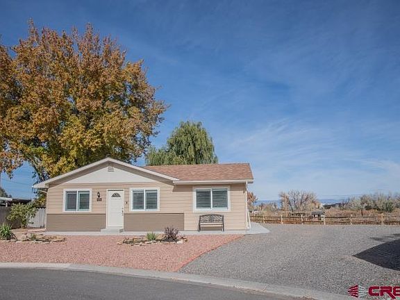 Affordability and move-in-ready, discover this fully remodeled gem tucked away on a peaceful cul-de-sac just outside city limits. Connected to Montrose City Water and West Montrose Sanitation District, this home combines modern upgrades with serene rural charm—no HOA, no covenants, and irrigation included. Every detail has been thoughtfully updated with permits: fresh cement walks and large patio, durable siding, energy-efficient windows and doors, updated electrical, and stylish new flooring throughout. Step inside to a move-in-ready interior boasting high-end finishes. The gourmet kitchen shines with sleek granite countertops and a full suite of brand-new appliances. The luxurious primary suite is a true retreat, featuring a newly added private bathroom and spacious walk-in closet. Large door opens directly to an expansive patio, where you’ll enjoy breathtaking northern and eastern views. The generous lot is framed by mature trees and a year-round creek meandering along the rear boundary, creating a tranquil backyard oasis. It includes a great little garden area and a shed plus, a dedicated RV pad with full hookups awaits your adventures This rare find is a must-see—schedule your showing today!