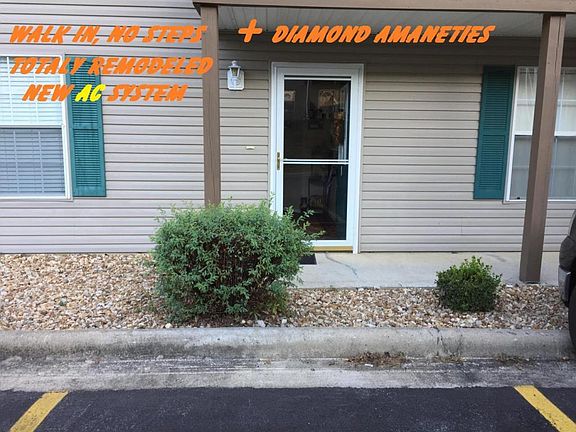 FULLY FURNISHED 1 bed 1 bath condo, WALK-IN ground level END unit. Upgraded and turn-key ready. Would make a great vacation home or nightly rental. Fantastic location within minutes to Dining, Shopping, Shows and Attractions. Fall Creek Marina is within walking distance. Carpeted bedroom and wood laminate flooring throughout. Furnishings include stackable front load washer dryer; bedroom, living room dining room and patio furniture; and all cookware dishware and kitchen appliances. Don't miss this one!! Call for your showing today!