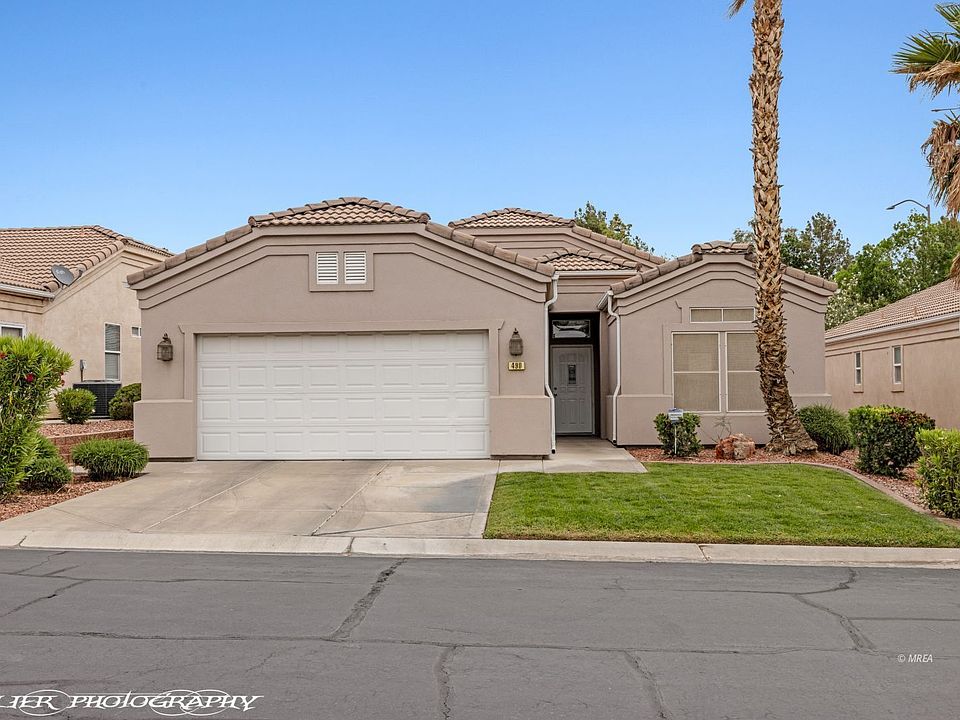 Well Maintained Home in +55 Gated Community. NEWLY Updated 3 bed, 2 bath home in Highland Fairways 55+ gated community. 1,505 SF with tile flooring throughout, a FRESHLY PAINTED interior including walls and cabinets, and vaulted ceilings that add space and light. The garage floor has been newly epoxied, giving it a clean, modern finish. This well-maintained property includes recent upgrades: water heater, dishwasher, garage door mechanism, pressure control valve, and drip system. Guest bedroom is thoughtfully located opposite the primary suite for privacy. The fully fenced yard offers peace of mind, with low-maintenance landscaping handled by the HOA. Residents enjoy access to the Mesquite Vistas clubhouse, pool, spa, fitness center, and tennis courts.