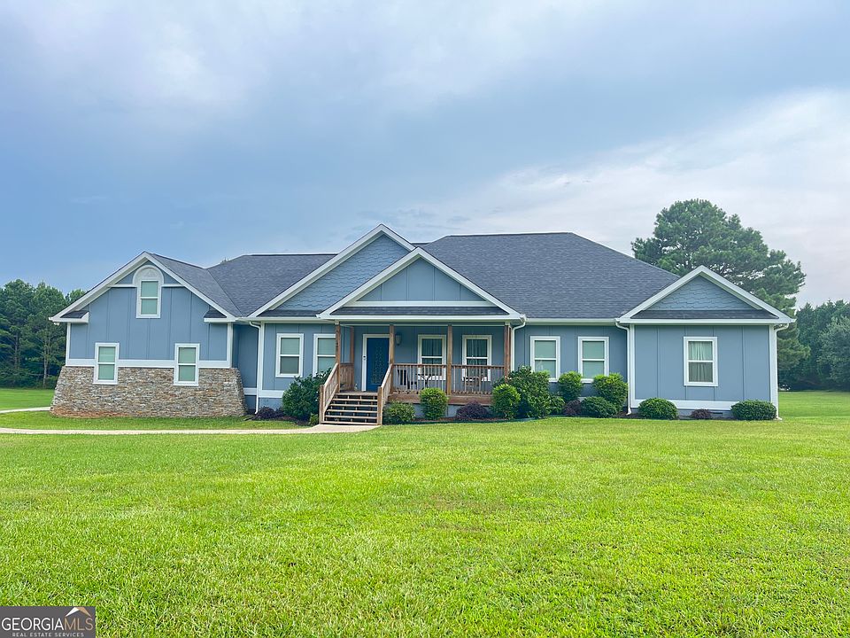 Built in 2017, this beautiful custom home offers the perfect blend of modern comfort and country living. Situated on four spacious acres, the property features 3 bedrooms, 2.5 baths, a dedicated office, and a large finished bonus room with its own mini split system-ideal for guests, theatre room, extra living space or could even be converted to a fourth bedroom. The open floor plan is designed for entertaining, with seamless flow between the living, dining, and kitchen areas. Ample walk-in closets throughout the home provide exceptional storage, and the walk-in attic adds even more convenience. This home is enhanced with stylish, upgraded light fixtures that bring warmth and character to every room. From statement pieces in the main living areas to elegant touches in bedrooms and baths, the lighting has been thoughtfully selected to complement the home's design while creating a bright, inviting atmosphere. Step outside to a spacious back deck, overlooking a private backyard, there is an exterior half bath on the deck making it perfect for outdoor entertaining, playtime, or when working in the yard. This home offers the best of both worlds-plenty of space inside and out, with thoughtful touches for modern living.