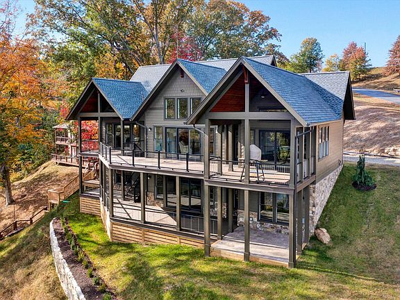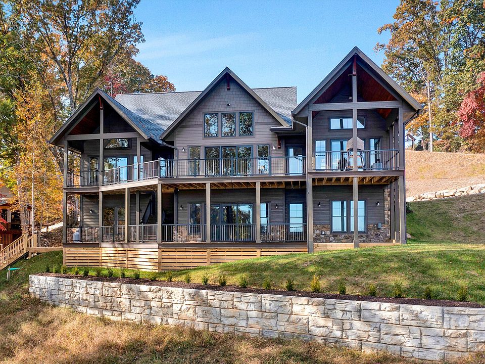 New construction waterfront home in The Coves at Smith Mountain Lake. Built by Mountain Retreat Living, SML's only Southern Living Custom Builder, this home is one of a kind! Designed for comfortable, yet impressive, living with long lake views from all rooms. Entry level is perfect for entertaining with vaulted living and dining areas that both access an expansive lake side deck. Master bedroom also boasts a vaulted ceiling and porch overlooking the lake. Finished lower level provides 2 bedrooms, 2 full baths, kitchen & living areas, a large unfinished storage area perfect for a 4th bedroom, and covered paver patio. Drive thru concrete driveway has ample room for parking. Awesome new composite, double slip dock just completed!