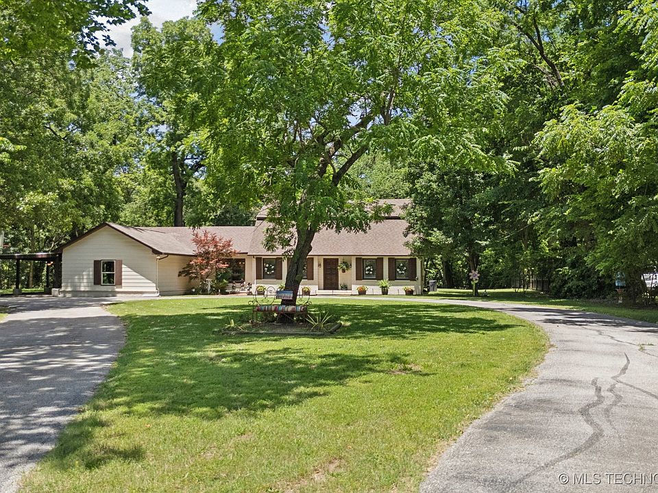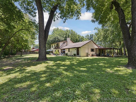 IMPROVED PRICING! This is more than a home—it's a lifestyle. Your Adventure Awaits-Dreams of Country Living Near the Rose District is RIGHT HERE! A rewarding opportunity to own this rare slice of nature-bring your dreams and imagination-the sky is the limit! Country living inside BA -Nature-Lovers, Bird-Watchers & Big Game Enthusiasts-this Tranquil, Magical, Enchanted Acreage is CALLING! PRIVATE & Unplatted w/ ALL City Utilities! One-of-a-kind property offers the feel of a nature preserve while being just minutes from the Rose District and New Orleans Square. Ideal for homesteading or the hobbyist. Updated home features a beautiful kitchen with gas range,huge island,dual dishwashers & farm sink & opens to a spacious family room, vaulted living room w/ woodburning fireplace, 2 dining areas including a cozy coffee nook. Two primary suites—one down with his/hers bath options & walk-through dressing/closet area. Four additional beds up offer large closets & access to a balcony perched high to soak in the views. The back landing offers the perfect home organization hub & segueys into the oversized laundry/mudroom with an exterior exit. The super-sized vaulted garage/bonus shop has access to covered parking PLUS another huge bonus space-easy to convert to a media or extra living space OR host a wood shop or at-home business. The most spectacular backyard boasts soaring mature black walnut trees with extensive areas to explore & entertain including a covered back patio, a new large deck with overlooking views into the forest, two fire pits, a treehouse deck & the most charming footbridge leads to additional wooded acreage. Wildlife including big game deer frequent the area—trails & natural surroundings abound-a truly private paradise. Plenty of room to add a pool, detached shop/garage, or expand the home. Just minutes to shopping, dining, festivals, parades, and all the amenities Broken Arrow has to offer. This unique property is truly a one-of-a-kind hidden gem!