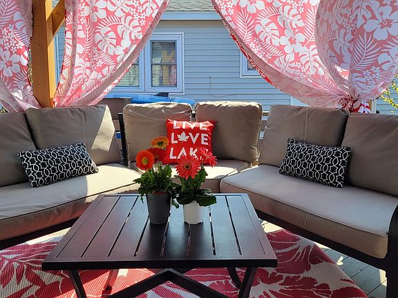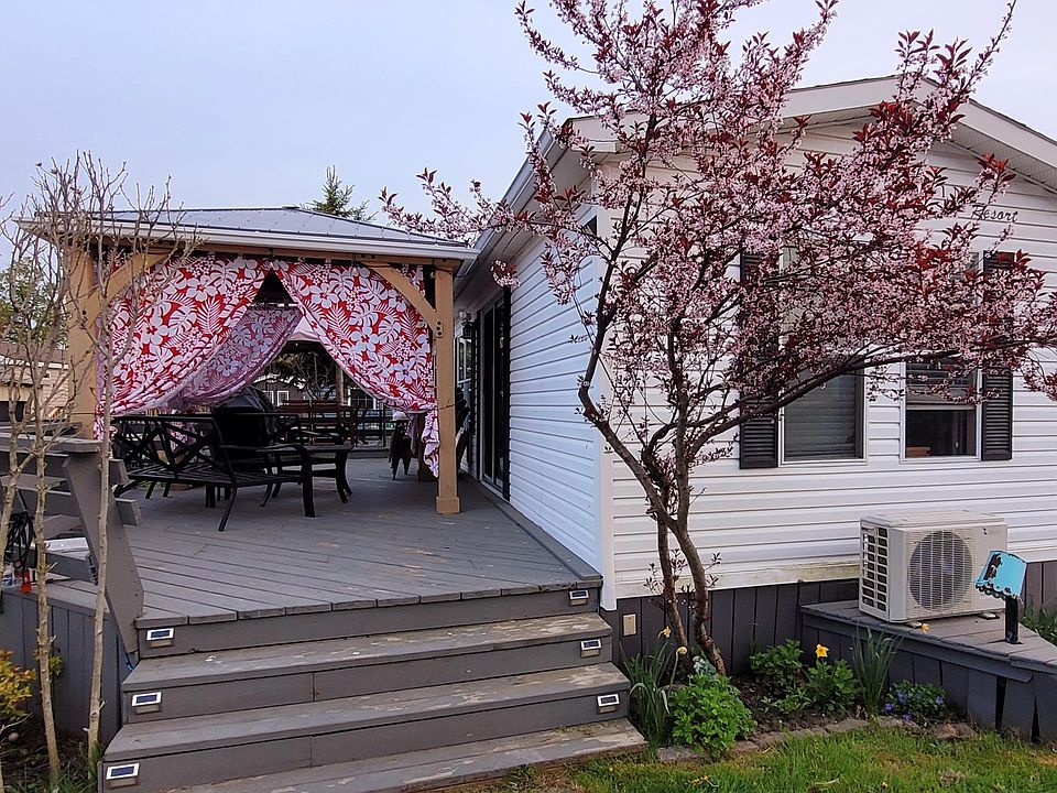 Welcome to Evergreen Village #89! This 3-bedroom cottage is ideally located near the Family Funplex and just a short trip to the beach. Inside, you ll find a bright, open-concept living area with a large chaise sofa, electric fireplace combination TV entertainment centre. The kitchen is well-equipped with full-size appliances, updated backsplash, and a dining space for family meals. Bedrooms include a queen room, second and third bedroom bunk rooms. Comfort upgrades include a split A/C system plus a portable unit. Outside, enjoy a spacious deck with a pergola, outdoor seating, dining area, and BBQ perfect for entertaining day or night under string lights. A great spot for relaxing, gathering, and making memories at Sherkston Shores.