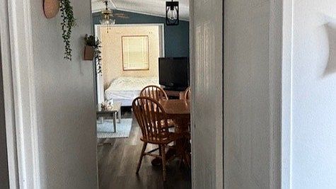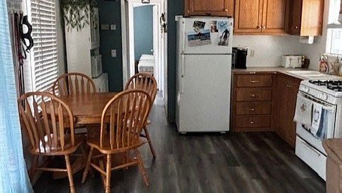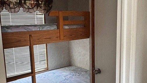 Welcome to Elcan Cove #4, a charming Northlander Cottager Classic offering 3 bedrooms and 1 bath within a 12x45 layout, perfectly designed for comfort and relaxation. Enjoy a bright, open living space featuring a cozy sitting area, a well-equipped kitchen, and a warm dining nook with natural light streaming through large windows. The spacious deck, covered by a hard awning, provides an ideal outdoor retreat for entertaining or unwinding with your morning coffee. Inside, the modern touches continue, from the updated flooring and stylish accent walls to the inviting bedrooms, including a primary suite and cozy bunk room for guests or kids. The bathroom features tasteful finishes with coordinated decor. Located centrally within the resort, you re just a short stroll from beautiful beaches, the family funplex, and the waterpark making this the perfect getaway for family fun or peaceful relaxation at the lake.