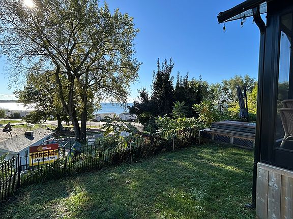 Fisherman s Hill #6 One-of-a-Kind Kropf Park Model! 2026 FEE'S INCLUDED! Stunning custom 2018 Kropf 14x38 ft park model with addition (approx. 840 sq ft) featuring 2 bedrooms (king + queen) and breathtaking lake views. This private, large lot has no front or rear neighbors peace and beauty combined! Inside, enjoy a chef s kitchen with a 4x7 ft driftwood-style island, stainless appliances, wine/beverage cooler, full pantry, and built-in microwave. Elegant driftwood cabinetry and an electric fireplace create cozy charm. Includes full washer/dryer, central air + split AC, and two pull-out couches. Outdoors: composite decking with glass panels, a screened 10x14 porch, firepit with built-in benches, and hilltop platform for sunset views. Parking for 4, 50 amp service, large water heater, shed, and top-grade furnishings included. Better-than-new move-in ready! Contact the Sherkston Sales Team today before it s gone!