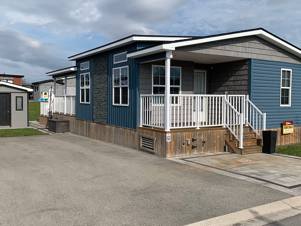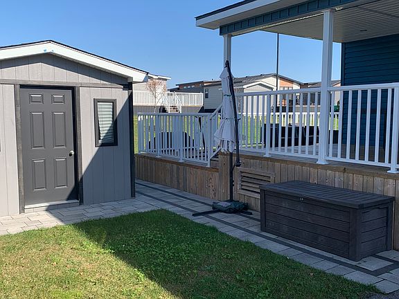 Welcome to Quarry Meadows #60! This 2 bedroom, 2 bathroom cottage is located down the street from the Quarry Meadows Clubhouse! this cottage is one and a half wide open concept cottage. Large kitchen island with plenty of seating around overlooks the spacious living room with fireplace. Lots of storage space with built in cabinets and closets. Back deck has been extended, giving you a large space to enjoy your cottage outdoors. Steps down to a patio and fire pit. Comfortable cottage living with inviting front porch, large shed for storage, and paved parking. Contact the Sherkston Sales team to book your appointment today!