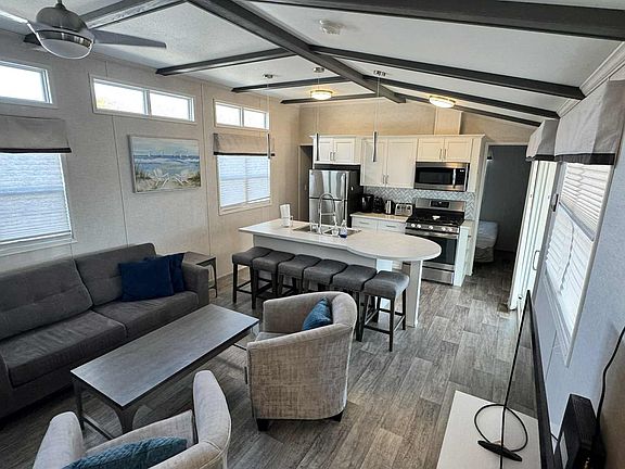 This bright and welcoming 3-bedroom, 1-bath cottage offers a spacious layout with high ceilings and modern finishes throughout. The kitchen features sleek stainless steel appliances, giving the space a fresh and functional feel. Outside, you ll find a large deck with a covered roof perfect for relaxing rain or shine and an interlock patio complete with a cozy fire pit for evening get-togethers. Located just steps from the homeowners-only pool, this site also provides a clear view of the weekly fireworks, making it a prime spot to unwind and enjoy the best of cottage life.