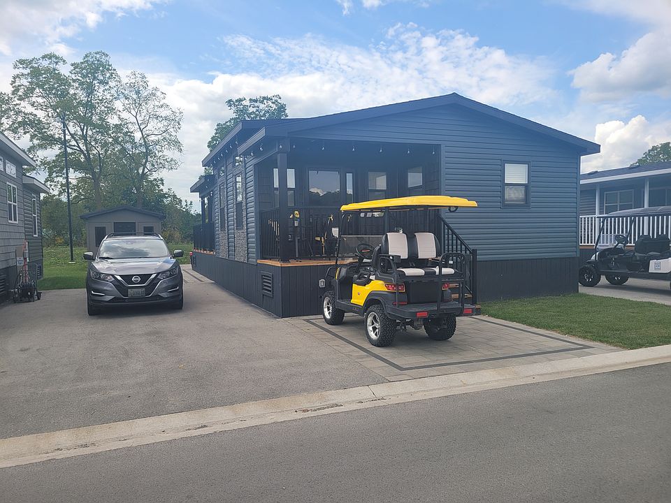 This is Quarry Meadows #192! The one and a half wide Forester model, with 2 bedroom and 1 bathroom. Located on the backrow, close to the new owner's only entrance. No rear neighbours, interlock patio, fire pit, and storage shed. Lots of built-in cabinetry throughout. Cozy living room complete with fireplace and sectional couch. This move-in ready cottage includes a Golf Cart and is ready and waiting for you to call the Sherkston sales team! Don't wait, call today!
