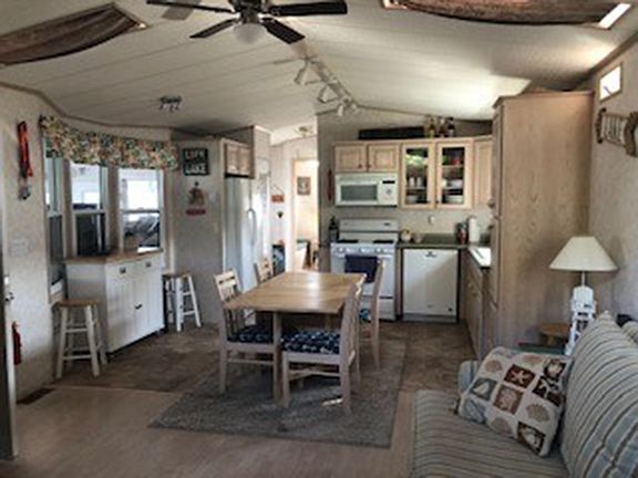 If right on the Lake is what you're looking for - look no further! This great 1 bedroom 14' wide Vacation Cottage with renovated add-a-room won't disappoint. It's very spacious inside with an open concept layout. It has additional sleeping areas in the add-a-room so don't let the 1 bedroom floorplan fool you. No carpet throughout the Cottage, a brand new tankless hotwater tank, new roof and skylights in 2018, washer and dryer and dishwasher. The large wrap around front deck completes this package, making it your area to enjoy the view and the company that you have up with you. Contact the Sherkston sales team today to view this vacation home!