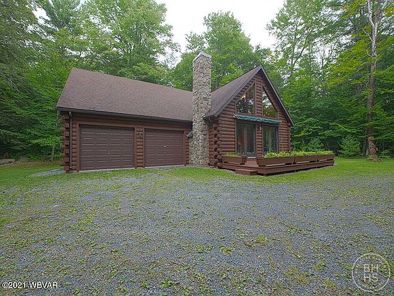 Freshly painted exterior on this beautiful log cabin sitting on 11 acres! Just down the road from State Game Land #75 and close to both Rose Valley Lake and PA Grand Canyon! Three bedrooms and two bathrooms, geothermal heat pump, two car garage, new well pump. Maintained road. Deer and bear galore on this country oasis!