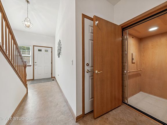 This beautiful Forest Glen Queen Anne model located in highly desirable 55 plus community offers a convenient location just minutes to grocery stores and shopping, subdivision walking path, and main thoroughfares. True maintenance free living at its best: no dealing with snow, yard work, or exterior maintenance! Beautiful walking path overlooking the forest preserve property, community park and private gazebo is the perfect place to meet new friends and chat. This quiet community is a hidden gem and should be on your short list! This welcoming home provides abundant natural light, 9' ceilings throughout the main level, and a main level master bedroom with en suite. Access is no problem to all levels of this home as the secondary bedrooms and family room can be accessed by the private elevator. Recent updates include solid surface counter tops, updated appliances, updated flooring, neutral interior painting, H/E~furnace & A/C, hot water heater, updated/converted tub to showers in baths, epoxy garage floor, suspended storage and garage utility sink! So many great amenities and more. The roof, gutters and exteriors painting was done in 2021-2022. Such a great place, you don't miss this incredible opportunity!