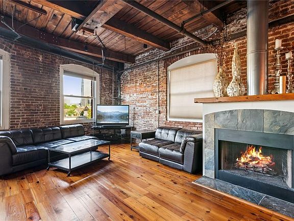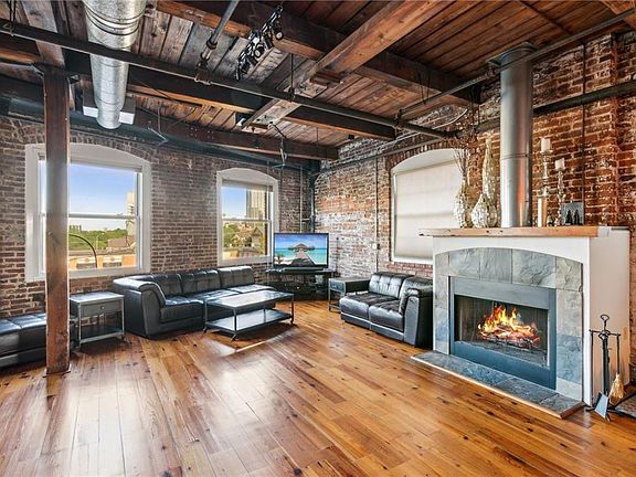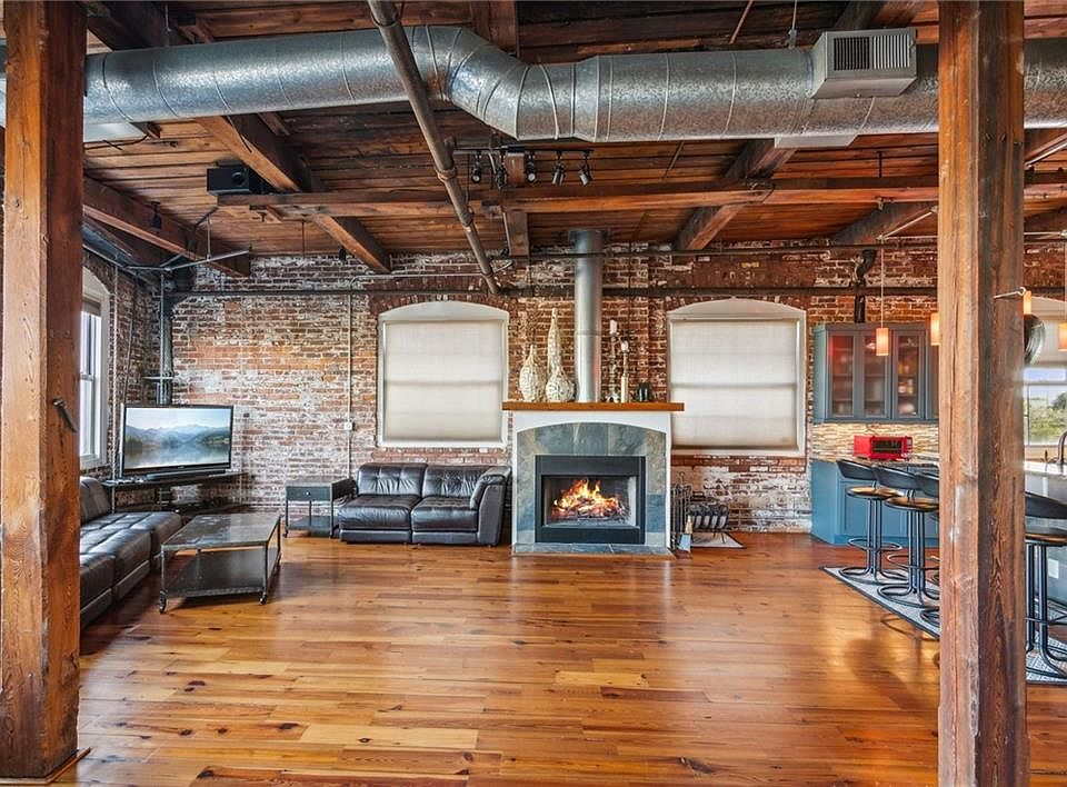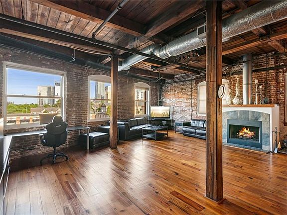 Discover a true gem with this penthouse loft in the historic Gasket City Lofts building. This rare top-floor unit combines classic charm with modern elegance, featuring soaring wood-beam ceilings, authentic heart pine flooring, exposed ductwork, and original aged brick walls. The open concept design creates a warm and inviting atmosphere in the expansive living area. As a corner unit, it benefits from an abundance of oversized windows with motorized shades, offering stunning skyline views, especially at sunset. Uniquely, this loft is the only one in the building with a wood-burning fireplace, complete with a gas starter and a classic design. The galley kitchen is a chef's delight, boasting beautiful granite countertops, a breakfast bar, stainless steel appliances, and efficient custom designed cabinets. A Murphy bed cleverly concealed as cabinetry provides additional space for guests. A standout feature of this loft is its private interior elevator, granting direct access to an exquisitely designed rooftop deck. Enjoy breathtaking panoramic views of downtown Atlanta, perfect for both entertaining and quiet relaxation. The expansive master bedroom is bathed in natural light from large windows and includes a walk-in closet and a separate laundry closet. The luxurious bathroom is a retreat of its own, featuring a deep-soaking tub, a double vanity, a frameless walk-in shower with elegant tile work, and even a bidet. It's a space designed for serenity and relaxation. Residents can also enjoy a spacious community rooftop deck with 360-degree city views, ideal for gatherings with friends and neighbors. Conveniently located just minutes from Mercedes Benz Stadium, State Farm Arena, Georgia Aquarium, World of Coca-Cola, Centennial Olympic Park, the SkyView Ferris Wheel, and the vibrant Westside Provisions District with dining hotspots like Marcel, Aziza, and O-Ku. Plus, it’s a short walk to Georgia Tech and only 15 minutes from the airport. Gasket Lofts offers unparalleled urban living at the heart of it all!