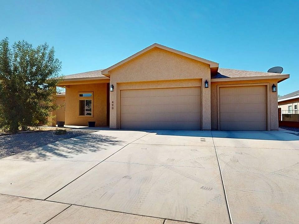 The primary suite includes a large walk-in closet, dual vanities, and a walk-in shower. Outside, enjoy an oversized patio and a low-maintenance turf yard. A 3-car garage offers additional parking and storage.