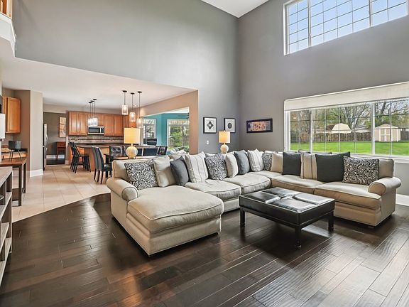 Beautiful and spacious home, ready for you to move right in! As soon as you pull up, you'll notice the huge driveway, space for everybody both inside and out. Located on a premium lot in the Country Place neighborhood, this home is on nearly half of an acre. Inside, you're greeted by tall ceilings and an open and bright layout. The living room and dining room are open to each other, creating a great entertaining space. The eat-in kitchen opens to both a breakfast room (which overlooks the huge yard) and the family room with two-story ceilings. Laundry is conveniently located on the first floor and features good storage and a utility sink. BONUS: The first floor den can double as a first floor bedroom and is conveniently located next to a full bathroom. Dual staircases allow you to access the second floor from the entryway or the family room. Upstairs, the private primary en suite is on one end. It features a walk-in closet and a large bathroom with a soaking tub and separate shower. Three additional bedrooms are also on the second floor plus an updated hall bath and an upstairs living room, perfect for a playroom or hang out space. The basement is unfinished, but awaiting your finishing touches! Make it your own. Outside there's space to run around or entertain in the oversized yard. A shed provides extra storage for outdoor equipment. The two car garage is also oversized. Plenty of storage throughout! All of this is conveniently located near shopping, restaurants, and easy highway access. Care and attention to detail throughout with newer window panes (2022), siding (2022), water heater (2019), furnace and ac (2017), and roof (2013). *Seller is offering a $5000 closing credit to the buyer for replacement of second story flooring- pick what you want!* Come see it today!