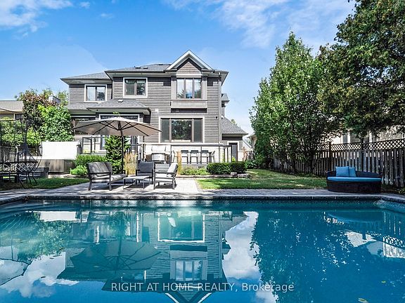 Exceptional home in a highly desirable community with a resort-style backyard. Enjoy fully landscaped and sun-filled grounds, large deck for entertaining overlooking a heated saltwater pool, jacuzzi hot tub and sauna with changing room! This beautifully designed home welcomes you with the den/office at the front of the house, offering both privacy and convenience. The elegant dining room, highlighted by a coffered ceiling, flows seamlessly into a gourmet kitchen with a butlers pantry, overlooking the spacious family dining area and inviting open concept living room. Upstairs, discover four well-appointed bedrooms: two with their own private ensuites and two connected by a Jack-and-Jill bathroom. The professionally finished basement is equally impressive, featuring a climate-controlled wine cellar, a fifth bedroom with its own ensuite, ideal for guests, and an additional powder room! On a quiet street in a friendly neighbourhood, only 5 minutes from beautiful downtown Oakville and Bronte, close to the highway and GO stations, and walking distance to Lake Ontario and Appleby College, with excellent local public schools.