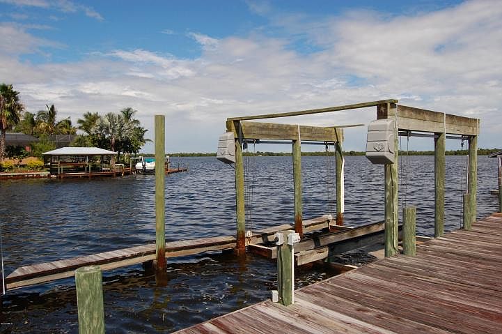 **BACK ON THE MARKET and REDUCED $$$$!!**HERE'S YOUR 2ND CHANCE--THIS IS THE ONE!! MILLION $$$ VIEWS THAT YOU'VE BEEN WAITING FOR!!**Gorgeous Water & Wildlife Views located at the Mouth of Sykes Creek! UNIQUE 4BED/3BATH TRI-Level Features Real Hard Wood Floors with 2nd Story Villa Style screened Balcony off Master Suite--MORE Spectacular Views, just like Riverfront! Open Great Room type Floor Plan, Nice landscaping, Large Boat Lift and Dock. Metal Roof and Mother-in-Law/Guest Suite w/Private Screened Patio to Enjoy those Views! Seller VERY Motivated, Must SEE, QUICK CLOSE POSS!!