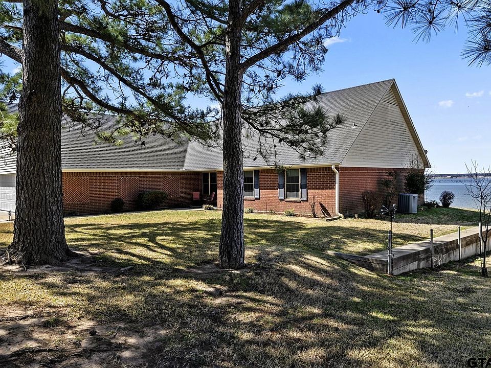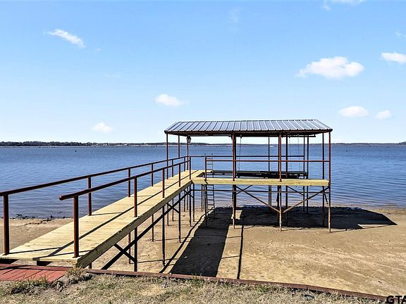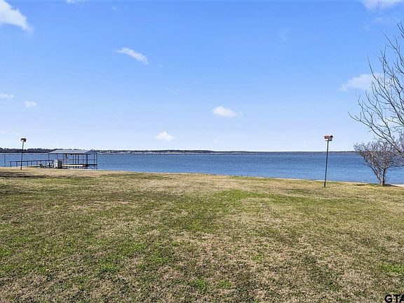 A beautiful, breathtaking, panoramic view of Lake Fork is the best way to describe this waterfront home. There might not be a better part of the lake to capture the sunsets you will see at this home. And I have to imagine the full moon drifting over the lake is quite stunning. You have over 200 feet of shoreline and retaining wall. There is a simple boat house ready to take you out on the world-famous bass lake. The back deck and back yard are perfect for when the family all gets together. This home has two, very large bedrooms and three bathrooms. It is more than 1800 sq. feet of living area and over 2800 sq. feet under roof. The floor plan is open living. The living area has recessed lights, ceiling fans, a wood-burning fireplace with an insert and an exposed center beam running the length of the living area and through the kitchen. The flooring throughout the entire home is tile except in the bedrooms and there it’s laminate flooring. Both types of flooring are perfect for lake living. It has a screened-in porch on the lakeside that is almost 30 ft. long with lighted ceiling fans. If you need to catch up on some work at the office there is a small office area. The garage is oversized, almost 800 sq. feet and deep enough to park your boat. If you want to play a round of golf, just drive your golf cart less than a mile and across from the front entrance of the subdivision, is a fun 18 hole golf course. Do not think about this too long. You just might miss this one.