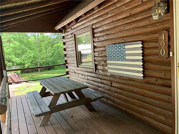 WOW! Make this quaint cedar log cabin your home or your retreat away from a busy life. Located in Unity Twp on a 2 acre parcel. The detached garage can hold a min. of 3 cars (32x24). A separate 100 amp breaker box and heater can be found in the garage. From the moment you walk up the front steps you're greeted with a great place to relax on the custom benches or at the picnic table. Carved cedar handrails guide you upstairs to the vaulted ceiling with fan and a walk in closet. The main level has a spectacular stoned fireplace that is currently set up for gas but can be converted to logs. The walls show the natural beauty of the logs surrounding this floor. Sliding glass doors off of the eating area lead to a large deck overlooking the level 2 acres. The modest kitchen takes you back to a simpler time. A second bedroom and full bath are also located on the main level. Finished basement with a second room that can be an office/playroom. A large storage area runs the width of the home.