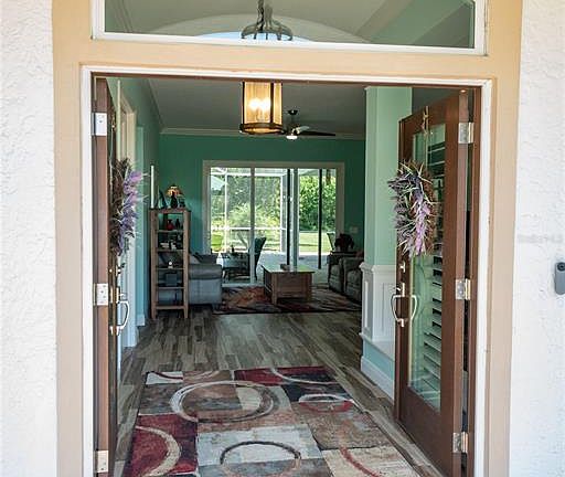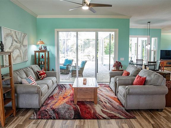 Welcome home to your HGTV Dream Home in the VERY EXCLUSIVE Moss Branch Acres community! SERENE views of MOTHER NATURE (including deer), from this EXCEPTIONAL EXECUTIVE home, with UPGRADES GALORE, nestled on a PREMIUM lot OVER ONE ACRE on a CUL-DE-SAC with NO CDD, LOW HOA (only $500/year) and A-Rated schools! Immediately notice the GORGEOUS curb appeal, MANICURED landscaping with lighting, LONG driveway, and true 3-CAR GARAGE. This home is IMPECCABLY maintained (IMPACT RESISTANT WINDOWS, DOORS, SLIDERS, & GARAGE DOOR + Whole Attic Ductwork 2022 + Pool RESURFACED & Re-Tiled 2025)! Upon entering the MODEL-LIKE home through the BEAUTIFUL DOUBLE DOORS, be OVERWHELMED with the OPEN FLOOR PLAN + WOOD-LIKE TILE THROUGHOUT the main living areas + PLANTATION SHUTTERS + CROWN MOLDING + tons of NATURAL LIGHT. FANTASTIC OUTDOOR living space GREAT for ENTERTAINING! Splash into the AMAZING POOL with WATERFALL SPA or enjoy the SPACIOUS LANAI decorated with STUNNING PAVERS & PICTURESQUE VIEWS! DESIRABLE floorpan with 4 Bedrooms (PRIMARY SUITE includes SPA-LIKE primary bathroom with CLAW FOOT TUB, MAGAZINE-LIKE SHOWER, DUAL SINKS, WALK-IN CLOSET) + 3 FULL BATHROOMS (including a POOL BATH)! CUSTOM GOURMET eat-in kitchen has GRANITE countertops + BEAUTIFUL BACKSPLASH + RANGE HOOD + HUGE ISLAND + BREAKFAST BAR + STAINLESS STEEL appliances. Access to the HUGE lanai from the Living Room, Family Room, & Master Bedroom all through IMPACT sliders! Separate Dining Room ready for any gathering! Even the INSIDE LAUNDRY ROOM has been REMODELED (2022). Conveniently located near restaurants, shopping, and the Veterans. Schedule your private showing today!