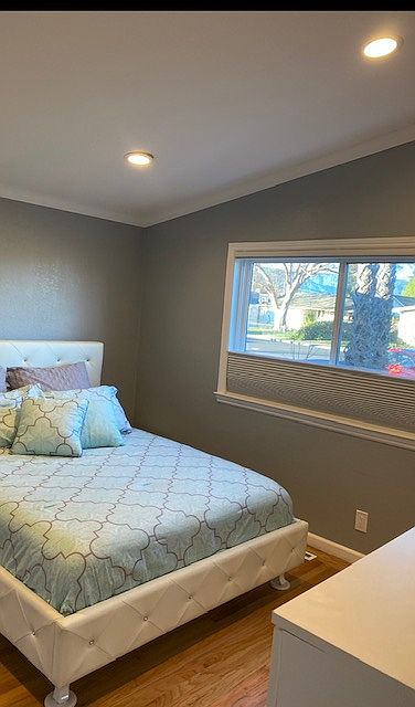 This room is in newly remodeled single family home with high ceiling and new modern furniture