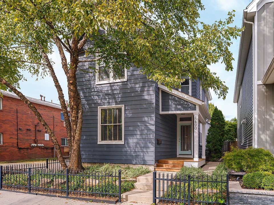 Charming home in Schumacher Place with an open floor plan and lots of natural light. Light wood floors throughout first floor, freshly painted interior walls and newer windows. The all white kitchen with SS appliances, granite counters, and pantry flows into the dining room around a painted brick chimney for ease of entertaining. Three good size bedrooms upstairs including a primary bedroom and full bathroom with vaulted ceilings. This home has separately zoned HVAC systems for first and second floor. Laundry room is conveniently located on the second floor. The privacy fenced back yard features beautiful mature ornamental trees and large patio. One car detached garage & new front porch floor!