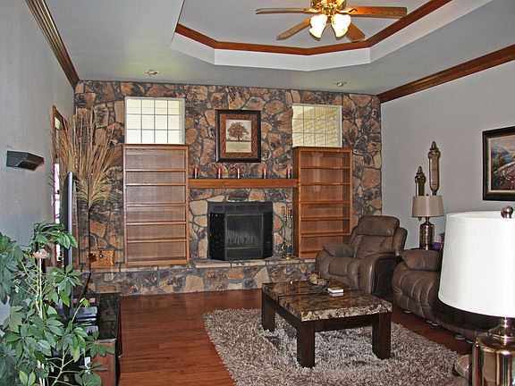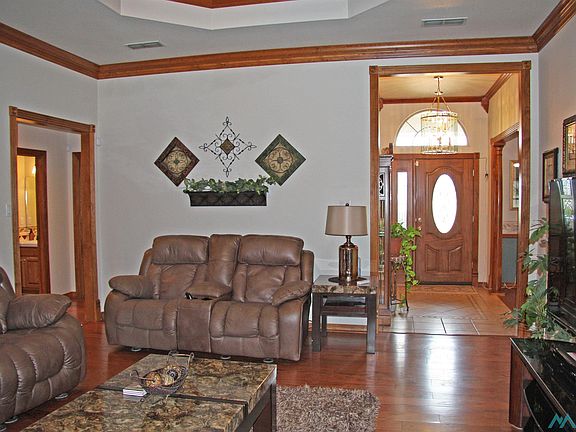 Beautiful Custom Built Home that sits on 4 acres. Grand entry hall with tall ceiling and chandelier. The large family room invites you in w/fireplace, wood floors and tall coved ceiling. The home boasts a formal living room and dining room. The kitchen has lots of counter space, a large pantry, eat-at bar, tile floor & breakfast nook. The spacious master suite features a large bay window, coved ceiling, large bath w/double vanities, jet tub, separate shower, and 2 walk-in closets. Bedroom #1 has an attached bath & office. Down the hall are two more bedrooms and another bath. Each bedroom has a walk-in closet. A utility room w/sink and an attached 2 car garage w/attic access completes this floor plan. The backyard is fenced to separate it from the back 2 acres. There is a detached carport and a 8 x 12 metal storage building.