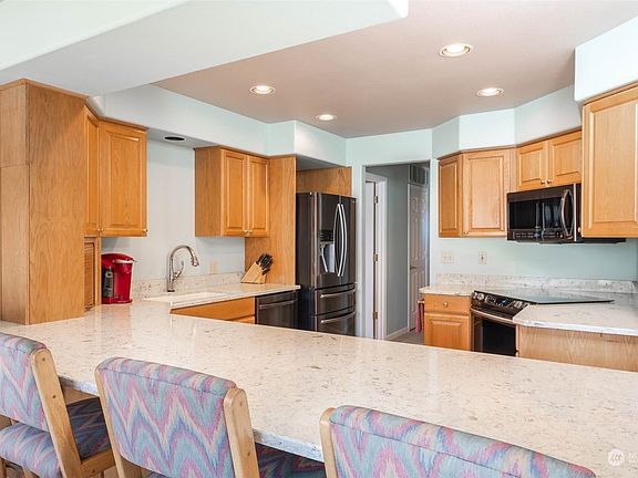 Move in ready! Vacant and ready to sell! Contemporary home in the coveted Sun Cove estates on a spacious lot, offering ample room to personalize. This beautiful waterfront community boasts amenities like a swimming pool, tennis and basketball courts, a launch ramp and marina, and a large beachfront park area. Inside, the living room features a cozy fireplace, the kitchen is adorned with quartz countertops, and there's a convenient 3/4 bath on the main floor. The upper level includes a large primary suite with a private deck overlooking the Columbia River. A stunning property in a highly desirable area!