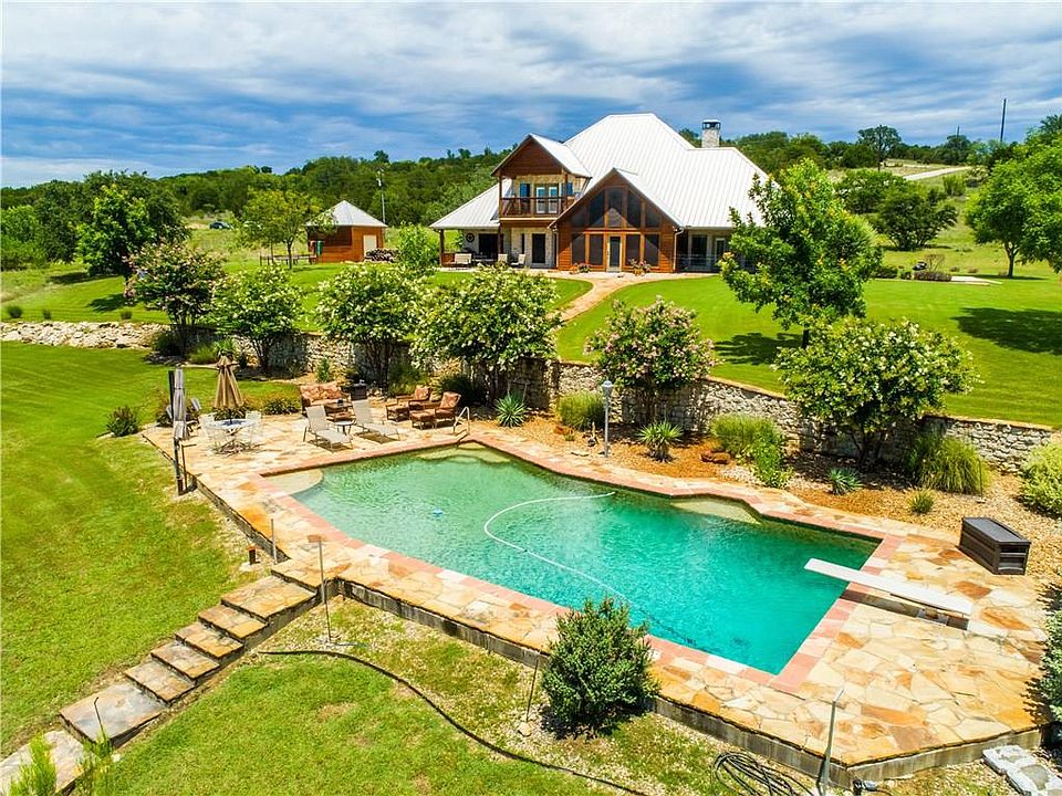 WATERFRONT 2.48 park-like acres with commanding panoramic views. 4bdrm, 3.1 bath, beautiful updates through out. Chef's dream kitchen, granite, warming drawer, Five Star gas range, pot filler, stylish cabinets and island like no other. Floor to ceiling windows in living area allow you to enjoy the outdoors without stepping outside. Hand scraped red oak floors, cathedral ceiling, rock WB fireplace, split bedrooms, study, extra living or formal dining room. Spacious master suite, beautiful bath and doorway to patio. 4th bedroom or media upstairs has extraordinary view of lake and pool from private balcony. Outdoor kitchen, wrap around porches, beautiful swimming pool, fish, swim and play in your own backyard.