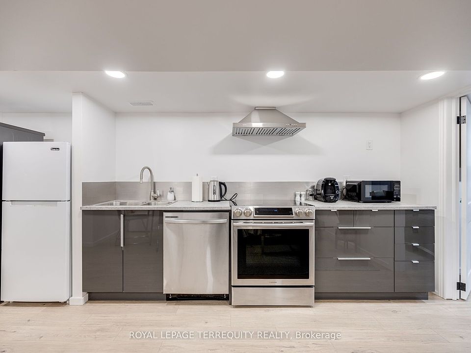 Beautiful one-bedroom basement apartmentRecently renovated unitModern furnitureOpen-concept layoutModern kitchenStainless steel appliances