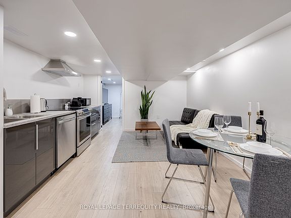 Welcome to this beautiful one-bedroom basement apartment nestled in one of Toronto's trendiest neighbourhoods! This recently renovated unit, thoughtfully furnished with modern furniture, features an open-concept layout and a modern kitchen equipped with stainless steel appliances. Enjoy the convenience of the convenient location, with the best restaurants, bars, and unique shops just steps away. TTC is right at your doorstep, ensuring you have easy connections to explore all that the city has to offer! Note: The unit could be unfinished if needed. Tenant pays $50 for utilities and an additional $50 for high-speed internet provided by the landlord. On-site parking available on the property for $120/month.