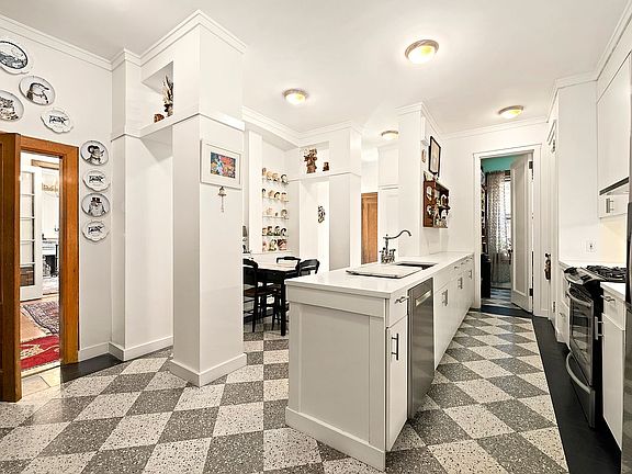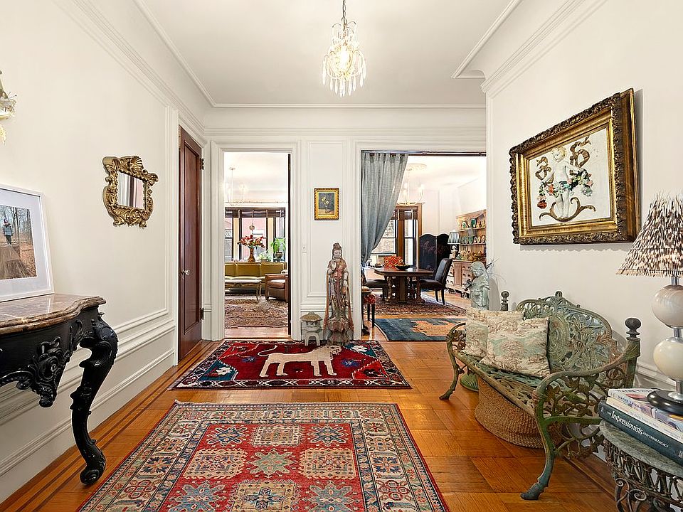 The home's private quarters are tucked down a private hallway for optimal peace and privacy. In the king-size primary suite, you'll find two roomy closets, southern exposures, and a windowed en suite bathroom. Two extra-large secondary bedrooms with abundant closet space of their own flank a third windowed bathroom with a large tub/shower. Move right in or put your personal stamp on this historic West End Avenue haven.
