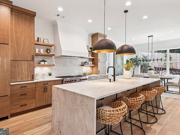 Now is the perfect time to secure your dream home near historic downtown Marietta, as the seller is offering a 2/1 rate buy-down with the preferred lender. Completed in September 2025, this luxurious residence combines modern comfort with timeless design and is ideally located near upscale dining, boutique shopping, wine bars, and seasonal festivals. This home offers 4 spacious bedrooms, 3 full baths, a large flex room, and a dedicated office. The gourmet kitchen is the heart of the home, boasting a Sub-Zero refrigerator, Wolf gas range, Bosch dishwasher, Sharp microwave, stone countertops, custom inlaid soft-close cabinetry, walk in pantry with built in cabinets and drawers and a large prep island with open views to the family room. A stylish bar area adds convenience for entertaining and casual gatherings. Throughout the home, you'll find 5" site-finished hardwoods, abundant natural light, and designer details including high end light fixtures and upgraded tiles. The primary suite is a private retreat with a custom accent wall, while the spa-like bath showcases vaulted ceilings with beams, dual vanities, a free-standing soaking tub, a frameless glass shower, and a spacious walk-in closet with direct access to the laundry room. A main-level guest suite provides comfort for visitors, while upstairs offers two additional bedrooms plus a versatile bonus room perfect for media, play, or relaxation. Enjoy outdoor living year-round on the covered patio with a large fireplace. Built with exceptional attention to detail, this home features a 30-year architectural roof, tankless hot water heater, spray foam insulation, and rounded wall corners blending efficiency with beauty. Don't miss your chance to take advantage of the 2/1 buy-down incentive schedule.