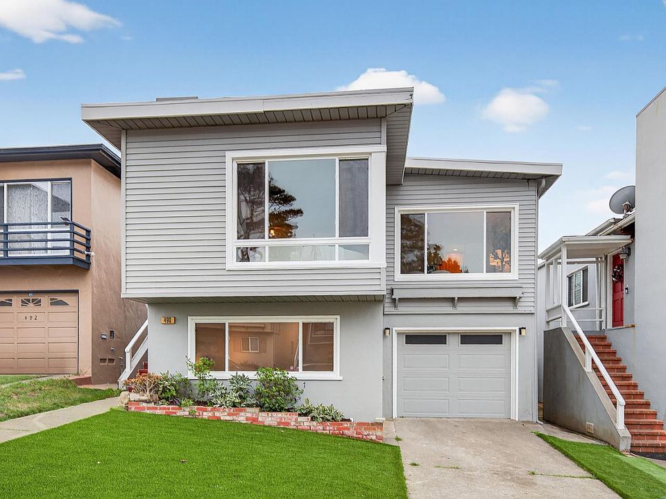 Nestled in Daly City's vibrant Westlake Palisades neighborhood, this remodeled Doelger home offers Pacific Ocean views, high ceilings & comfortable living. Large windows in the dining & living rooms flood the home with natural light. The spacious eat-in kitchen gleams with new stainless steel appliances, shaker honey oak cabinetry, quartz countertops & LED lighting. New appliances include a gas range--the choice of discerning home chefs. Beautiful refinished hardwood floors flow throughout. A wood-burning fireplace beside built-in bookcases provides cozy ambiance as coastal mists roll in. Updated baths showcase designer tile flooring, modern vanities & contemporary heated mirrors with integrated lighting. Step outside to the professionally landscaped, fenced backyard with private patio--ideal for entertaining & relaxation. With a gross living area (per county) of 2,370 sq ft, the main level has 3 generously-sized bedrooms & 1.5 bath while the 1,140 sq ft lower level includes a spacious bonus family room & legal full bath. Upgrades include new permitted roof & electrical panel. Well-situated near Avalon Canyon & Mussel Rock Park. EZ access to shopping, dining, hiking, SF Zoo & Ocean Beach. Minutes from Serramonte & Westlake shopping centers, Ranch 99 & Highways 1 & 280.