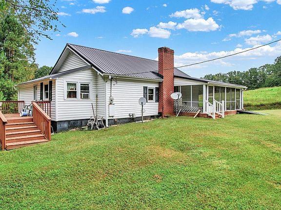 LAND, LAND and more LAND! Home in need of updating and sold as-is but sitting on 10.6 acres of unrestricted, mostly wooded land. Exterior of house is in good shape--vinyl sided, metal roof, vinyl tilt-in windows, screened wrap-around front porch and deck. Interior will need updating and repairs. Brick wood burning fireplace in living room. Gas heater in kitchen and window AC. Several outbuildings included all sold as-is like house. Well water so perfect opportunity to live off the grid. Fix the house up or build a new one on the property or even multiple houses on the land. There are no restrictions of use and no HOA. Jewel just waiting to be polished and brought back to life.
