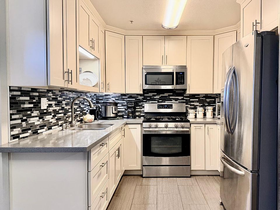 Move-In Ready! Nestled in a gated community - The Ridge Point Colony, this beautifully updated 2-bedroom/2 Bathroom upper-level condo offers a perfect blend of comfort and modern living. Featuring open floor plan, gourmet kitchen, cozy fireplace, covered balcony, ensuite bath in main bedroom, customized closet storage, inside laundry, private garage, designated guest parking. Recent remodeling and replacement including: HVAC System replacement in 2022, Hot Water Heater replacement in 2021, Master Bathroom and Guest Bathroom renovation in 2020, Kitchen renovation in 2016, Both Bedrooms Flooring replacement in 2015, Living room Flooring replacement in 2016 and Washer & Dryer replacement in 2022. Common area amenities include pool, spa/hot tub, clubhouse, exercise room, game court, basketball court and tennis courts. Excellent location near shopping, dining, parks and freeway. Minutes from Costco, Sam's Club, Safeway, WinCo, BelAir, Walmart SuperCenter, and walking distance to Kohl's Department Store.