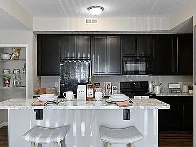 - Exterior features: Apartments with Garages Available, Building-wide Wireless, French/Sliding Doors on Select Units, Garbage not included in rent, High-speed Internet Ready, Individual Entrances, Kitchen Island and All Black Appliances, Neutral Decor, Oversized Floorplans with 9-Foot Ceilings, Pet-Friendly Apartments, Professional Landscaping, Resident Coffee Bar, Resident Cyber Stations, Spacious Closets, Upgraded Satin Nickel Lighting and Accents, White Woodwork