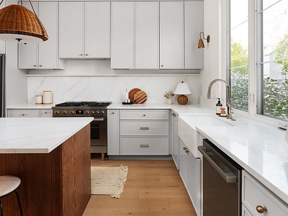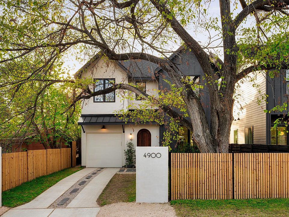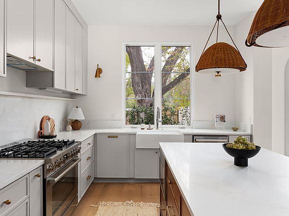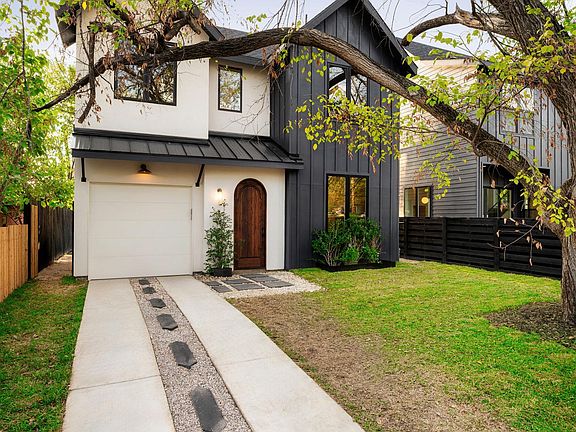 Experience inspired living in this Modern Transitional single-family residence, where Organic Modern interiors, natural materials, and architectural details come together in perfect harmony. Positioned on an 8,000 sq ft corner lot surrounded by mature trees, this newly built home balances warmth, openness, and timeless sophistication. A stunning arched wooden front doorway sets the tone the moment you arrive. The entry leads effortlessly into the kitchen, dining, and living areas, forming a continuous open-concept path that extends all the way to the covered patio and turfed backyard. This intentional design creates a true sense of indoor/outdoor living, blurring boundaries and making the home feel expansive, airy, and deeply connected to its surroundings. The kitchen is a showpiece, featuring: • Quartz countertops wrapped fully up the wall as a seamless backsplash • Quarterline shaker cabinetry with mixed metal hardware • Bosch stainless steel appliance suite with a 36" gas range • Drawer microwave and modern fixtures Upstairs, the vaulted-ceiling primary suite offers a peaceful retreat. The spa-inspired bath includes a curbless walk-in shower, frameless glass, built-in bench and niche. Two secondary bedrooms, a beautifully finished bathroom, and a dedicated laundry room complete the level. Outdoor living is exceptional with: • Large covered patio and a second private covered balcony upstairs • Large turfed backyard surrounded by mature trees • Architectural fencing combining black metal posts, vertical 2x2 wood, and stucco elements Premium features include: • Smart thermostats • Ring doorbell • Navien tankless water heater • Energy-efficient spray foam insulation • EV charging outlet (220V) Located in a quiet, walkable neighborhood with quick access to major highways and only 10 minutes to downtown Austin, this home offers refined design, modern livability, and an atmosphere that feels both elevated and inviting. Owner/Agent
