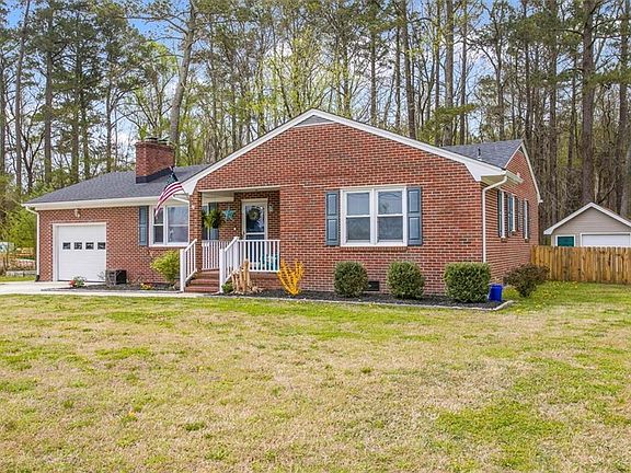 Welcome home! Open floorplan style 3 bedroom and 2 bath brick ranch home with 1 car finished garage sitting on just under 1 acre lot. Many upgrades within the past 5 years include LVP flooring, windows, American Standard Heat pump HVAC system, Architectural shingled Roof and updated baths. Large kitchen with plenty of counter and cabinets, granite counter tops and stainless-steel appliances. 12x12 storage shed with roll up garage door with workshop area. Outdoor covered porch area for grilling and entertaining. New 4 ft wood fence and large yard with wooded views.