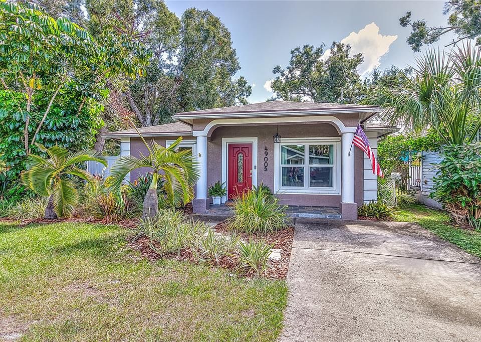 Welcome home to this beautifully updated and completely move-in ready home! You will enjoy living with peace of mind in this high-and-dry location NOT in a flood zone, and having a new roof and brand new air conditioner! The charming curb appeal will pull you right in as you arrive to this freshly painted and maturely landscaped property. As you enter, you will happily feast your eyes on brand new wide-plank luxury vinyl flooring and fresh interior paint throughout. The open floor-plan conveniently connects the sprawling kitchen, dining room, and living room spaces. Down the spacious and naturally lit hallway, there is an ideal split bedroom floor-plan perfect for any family or friend dynamic! The new dual paned doors and windows will not only provide you fortitude and peace of mind as well, but they will offer energy efficiency and lower utility costs. If that isn't enough, they also provide noise mitigation from any whisper of neighborhood bustle! Around to the back yard is the most charming solid-wood pergola, a paved patio, and beautifully maintained astro-turf in perfect condition. With a fully fenced back yard and storage galore in the outdoor shed, your peaceful backyard oasis awaits! Here, you will be centrally located to all that Tampa Bay has to offer with a short drive to our famous white-sand beaches, some of the most highly rated restaurants and event venues nearby, and a direct route to the highly coveted downtown Saint Petersburg district. This one will not last long, come see it today!!