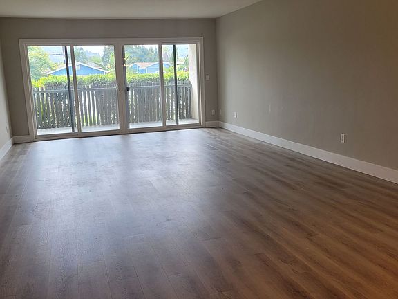 Beautiful and ready to move in 2 bedroom, 2 bath condo in the popular La Mesa area. Features include plank flooring throughout, upgraded kitchen and bathroom cabinetry. Kitchen appliances include double door stainless steel refrigerator, dishwasher, sink, and electric stove top oven and hood. The white cabinetry are surrounded by custom subway tile backsplash and recessed lighting. The granite countertops. The bedrooms feature neutral walls, contrasting floorboards, and sliding doors to the pleasant balcony outside. The bathrooms feature identical cabinetry and hardware as the kitchen and also include subway tiled shower as well as separate tub area, and double sinks in the primary bedroom's bathroom. Stackable washer /dryer. This special unit also features a spacious living room and dining room and much storage space. Parking for one car is assigned and underground. A/C is also included and water is included in the rental price.