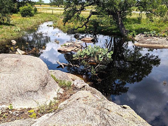 Small pondGranite outcropsGently rolling terrainWet weather creek