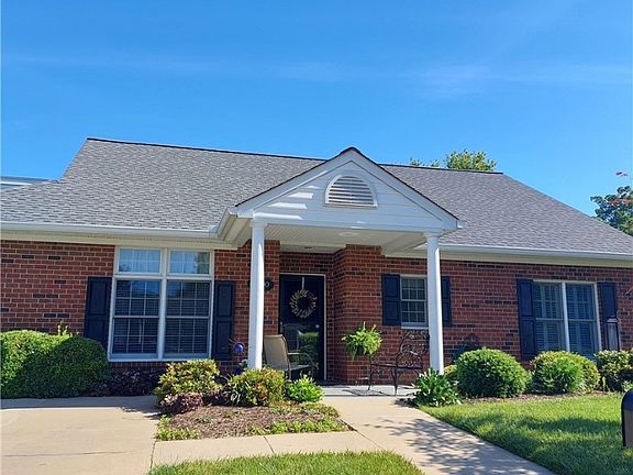 Welcome to Braxton, a 55+ single family brick home in quiet gated community. As you enter the home, from the covered porch, with no steps, you will find the foyer offers wider than normal hallways that enter the living area with numerous windows adding an open spacious feeling along with LVP flooring. With updated carpet in Primary bedroom, there is an en suite bath and walk-in-closet for convenience. Enjoy your morning coffee on the back patio which is surrounded by flowers, lovely trees, a raised garden bed, and a view of the Braxton pond. The gas fireplace in living area is an added feature offering a cozy atmosphere in the chilly days of fall and winter. You will find many activities that are offered in the community club house and even a spot for an RV, if you have one. Enjoy a walk or stroll around the park like area of the pond and feel the fresh air that surrounds the entire community. The pond is a nice addition for fishing and relaxing. Shed, blinds, curtains and rods, washer, dryer, refrigerator, mirror over fireplace, lights in primary bedroom convey. With ease of living, there are many upgrades including recent roof, water heater, cleaned dryer vent, and the yards are maintained by association; roads recently paved in community and trash removal included in HOA fee.