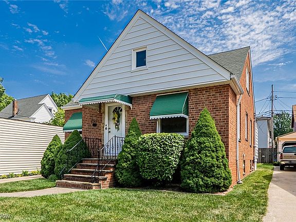 Welcome to 4901 E 110th St come be the 3rd owner of a beautifully maintained 3-bedroom, 1.25-bath brick bungalow offering 1,141 square feet of comfortable living space. This inviting home features two spacious first-floor bedrooms one with an enclosed sunroom looking out into the backyard and a large, light-filled upper-level bedroom perfect for a primary suite, guest room, or home office. Step inside to a bright and cozy living room, a well-equipped eat-in kitchen with ample maple cabinetry, and gleaming hardwood floors. The finished lower-level rec room adds valuable bonus space ideal for entertaining, relaxing, or hobbies. Recent upgrades include a new furnace and central air (2024), and a new hot water tank (2025) for peace of mind. All appliances stay! Outside, enjoy charming curb appeal with manicured landscaping and detached oversized 2 car garage. Located just minutes from shopping, dining, Cleveland metro parks, Garfield Heights high school, and quick access to I-480 and I-77, this home blends comfort, convenience, and character. Garfield Heights POS compliant.