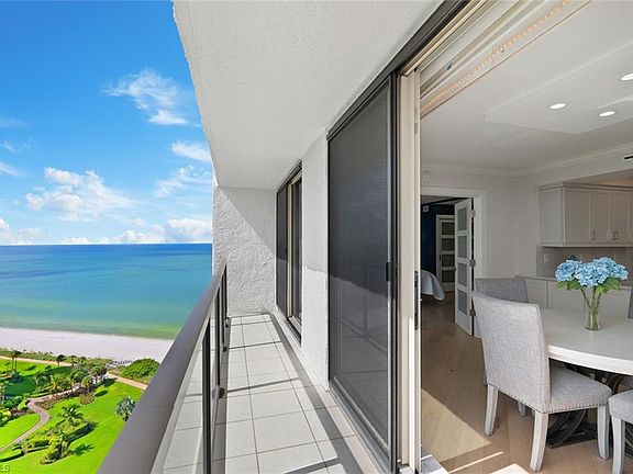 Sunrise, Seaside, Sunsets - with wide ranging views of Venetian Bay and views of the Gulf, this 3 bedroom coastal residence within the prestigious Meridian Club, a luxury high-rise located on 3.5 acres with more than 300 feet of beachfront and only 4 units per floor, offers a perfect retreat and relaxed Naples lifestyle. Fully renovated and immaculately maintained, with extensive outdoor lanai, including glass enclosed seating area, this luxury condominium features open-concept living with an abundance of natural light throughout, ideal for entertaining family and friends or just to enjoy privacy and watch the world go by. New HVAC, new water heater, and washer/dryer are some of the many added benefits to this wonderful condo! 2103 is move in ready for your enjoyment! Amenities include gated entry, 24/7 doorman, fitness room, social room, tennis courts, pickleball, library, large heated pool & spa overlooking the beach, cabana with BBQ grills, extra storage unit, and is pet friendly. As members of the Park Shore community, you have access to the private boardwalk & parks along the beach & direct beach access. Just a short walk to the upscale shops and restaurants of Venetian Village and quick drive to downtown Naples and Waterside Shops.