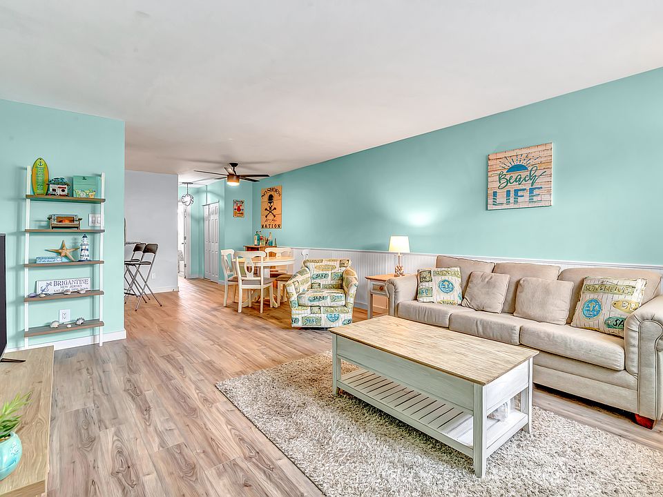 Yearly Rental. First Floor 1 bedroom, 1 bath condo located in Dolphin Cove on the South end. This beautifully renovated condo with all new vinyl plank flooring is coming furnished and includes all utilities except electric and internet. Tenant is responsible for electric and internet. The complex is located just a half block to the beach. Dolphin Cove offers a wide variety of amenities including an on-site laundromat, in-ground swimming pool, pickle ball courts and tennis courts. NO Pets and NO Smoking. Credit and background check required. Available 11/07/2025.