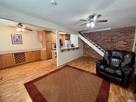 Beautiful and bright home in the heart of South Reno at Smithridge Greens! Close to schools, shopping and freeways! This condo boasts new laminate flooring and an updated master bathroom! Cool off from the hot summer heat in the pool!All rooms have ceiling fans with lights, and AC units, washer and dryer and other appliances besides refrigerator stay, and are less than 3 years old!