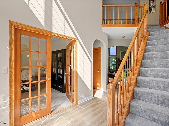 If you are looking for a home the blends comfort, luxury, and access to an active lifestyle-this custom built gem in Pebblehurst has it all!! Steps from the Metro Parks bike and hiking trails, it's perfect for outdoor enthusiasts! Nearby Fox Den Golf Course/Silver Springs Park..so much to enjoy! Relax on the stamped concrete patio year-round while soaking in breathtaking sunrises and views, or entertain guests in style. Inside, the 2-story foyer opens to a wonderful music/office area, formal dining with tray ceiling, and two-story great room filled with windows and anchored by a dramatic stone fireplace. The open kitchen features a breakfast bar spacious dinette area, and continued new (2022) flooring, first floor laundry and 1/2 bath. Upper level offers a primary bedroom/bath retreat with oversized walk in closet, luxurious glamour bath with corner garden tub, dual vanities, updated lighting and fixtures, water closet and walk in tiled shower. Three additional bedrooms and updated guest bath provide plenty of space for family and guests. The lower level is exceptional-offering approx. 800 square feet of finished living space complete with family room, full bath, office, built-in sink, and newer wine closet! Outside, enjoy the irrigation system that keeps your lawn lush and green all summer long and newer garage door (2022)...Don't miss the opportunity to own a home that offers both everyday comfort and a truly active lifestyle!