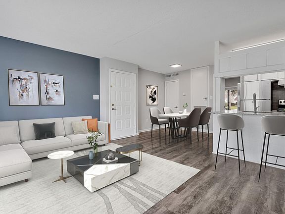 Modern light fixturesWell-kept communityWood-style flooringStriking accent wallsGranite countertopsStainless steel appliances