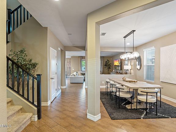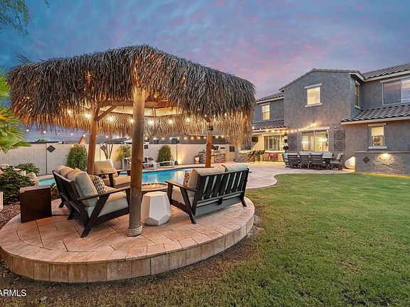 NEW LISTING! For those who value resort living in a signature location...Look no further! Move-in ready with a dream backyard, an entertainer's paradise boasting; A huge sparkling pool, large green space for sports or games, a full built in BBQ and outdoor bar with misters, outdoor speakers, as well as a peaceful palapa with a firepit, overlooking the pool to enjoy covered outdoor dining. This upgraded open floor plan home is located within the highly sought after Bridges North community, just minutes from the only private golf club in Gilbert, Seville Country Club. Fit for entertaining; stunning and pristine from the moment you enter the front door, including an extremely spacious and rare MAIN LEVEL EN SUITE GUEST BEDROOM. The seamless floor plan is inviting, opening up to your spacious main living area and beautiful kitchen, with large windows overlooking the backyard. Off of the kitchen is a breakfast nook and pocket office, as well as another office/game room and powder room. The second level features a large Master Retreat with a spacious seating area, walk in closet, dual vanities, walk in shower and tub. Another en suite bedroom is accompanied by two additional bedrooms. There are also TWO LOFTS/FLEX SPACES, which makes this floor plan extremely flexible and accommodating. There are no neighbors behind the property and across the street is a huge park with plenty of more green space. The home is truly "move-in ready", exceptionally maintained, and the epitome of Arizona living. You are just a golf cart ride away from Seville Country Club and Gilbert Regional Park and a 15 min drive from San Tan Village and Downtown Gilbert.